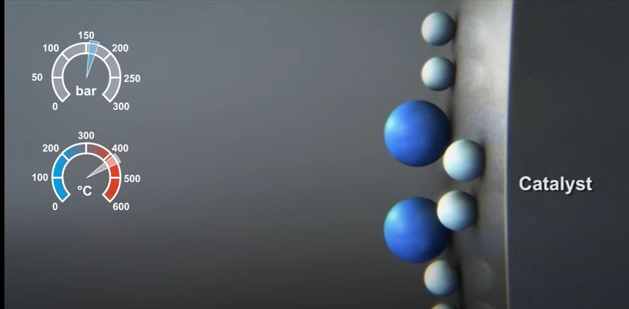 O processo Haber-Bosch é altamente influenciador na humanidade. 50% do nitrogênio encontrado no tecido humano tem origem nesse processo. Utiliza 2% da energia global e 3% do CO2 liberado. É considerado como o detonador da explosão populacional pois permitiu que de 1900 pra 2030 a população crescesse de 1 bilhão pra 8 bilhões