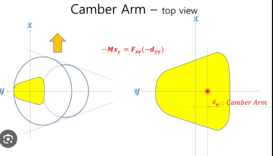 No entanto, na dinâmica de uma curva, com rolamento, superelevação da estrada, histerese da borracha, entre outros, pode-se encontrar vantagem em utilizar o câmber negativo