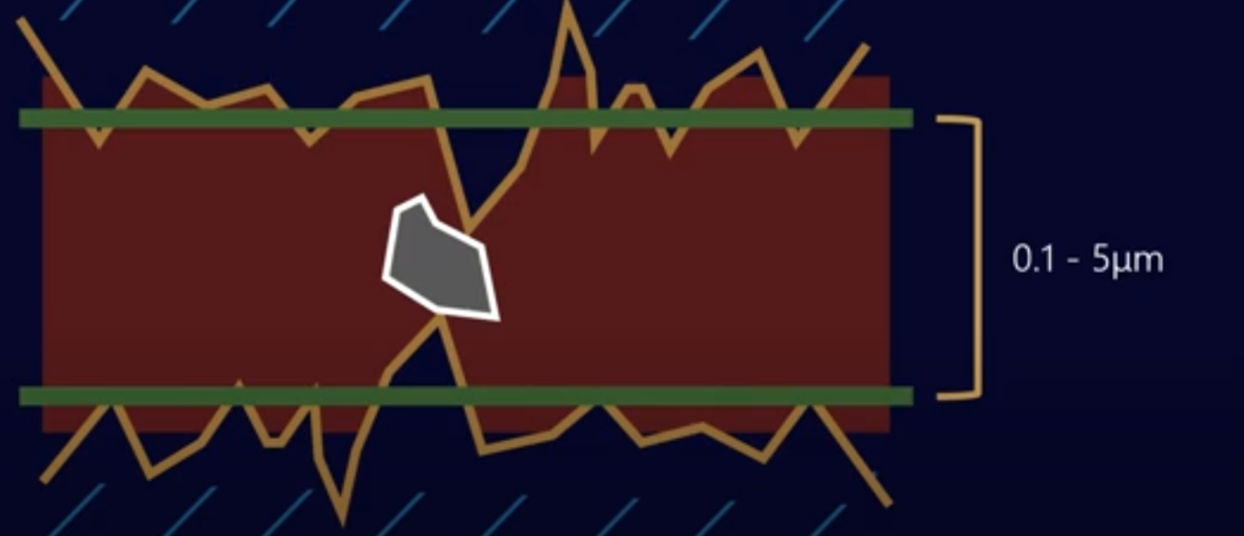 A espessura é incrivelmente fina. No geral temos essas espessuras com ordem de magnitude menor que fio de cabelo