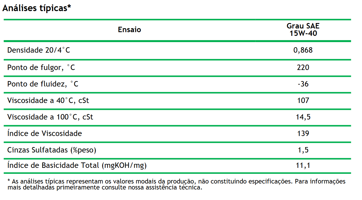 Abaixo um relatório de Lubrax 15W40 Top Turbo