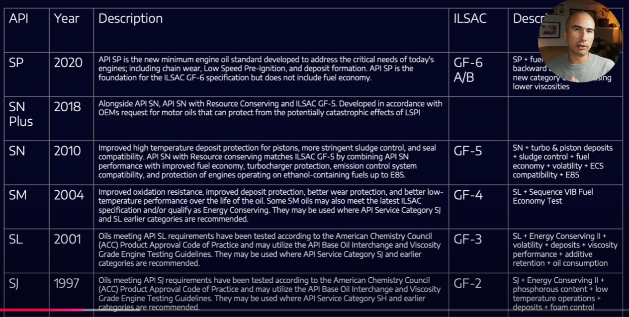 Na imagem acima podemos ver as diferentes evoluções de diferentes especificações. ACEA é mais utilizada na Europa, JASO no Japão e CI e GF nos Estados Unidos.