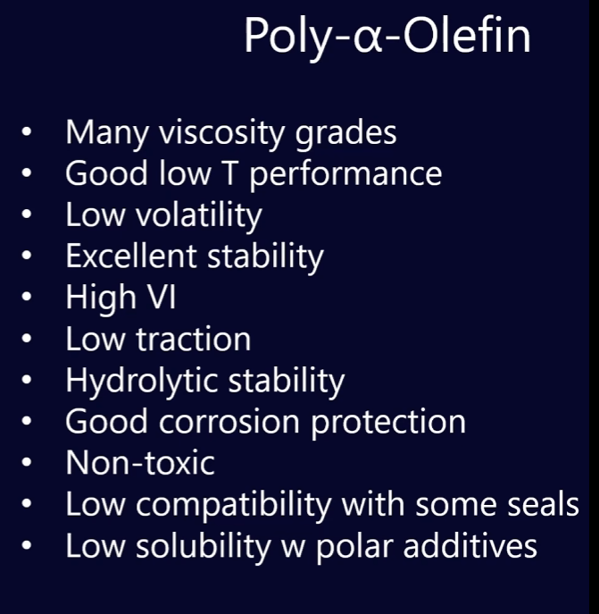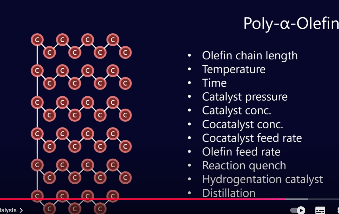 Mistura-se várias moléculas de alpha-olefin com um catalizador para produzir óleo de baixa viscosidade, mas o processo nem sempre é perfeito. Existem diversas variáveis